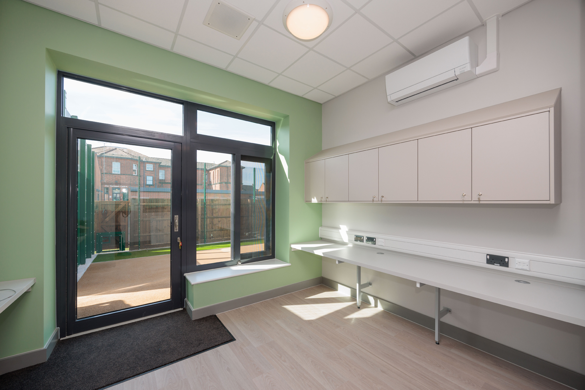 The project is located on the site of St Georges Hospital in Stafford. The new building houses a new S136 suite and crisis team, located within the grounds of the existing hospital. The building is two stories high; the main service user facility is all on the ground floor, whereas the first floor is separated entirely and exclusively dedicated to containing all the plant.